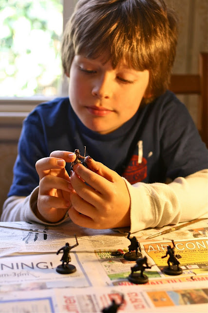The boys have been working on their miniature models, the dining room table has been taken over by an army of Orks, Roman soldiers, Goblins and Elves.